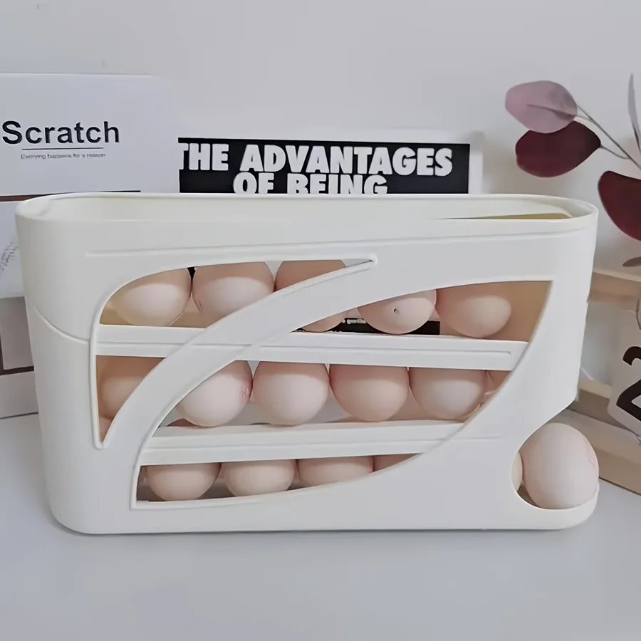 1PC refrigerator automatic egg rack filler. Automatically slides down. Saves effort and space. Large capacity stackable egg