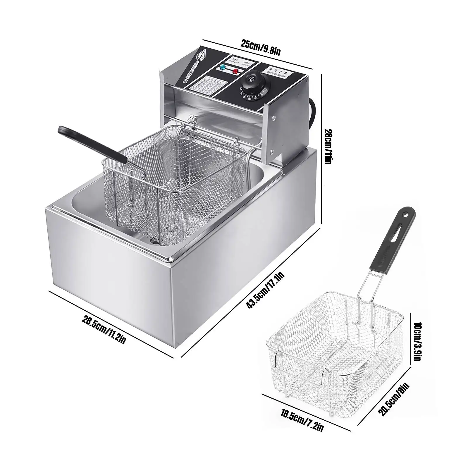 2500W 6L 220V Electric Deep Fryer Stainless Steel Electric Fryer Household Chips Frying Pan French Fries Making Machine