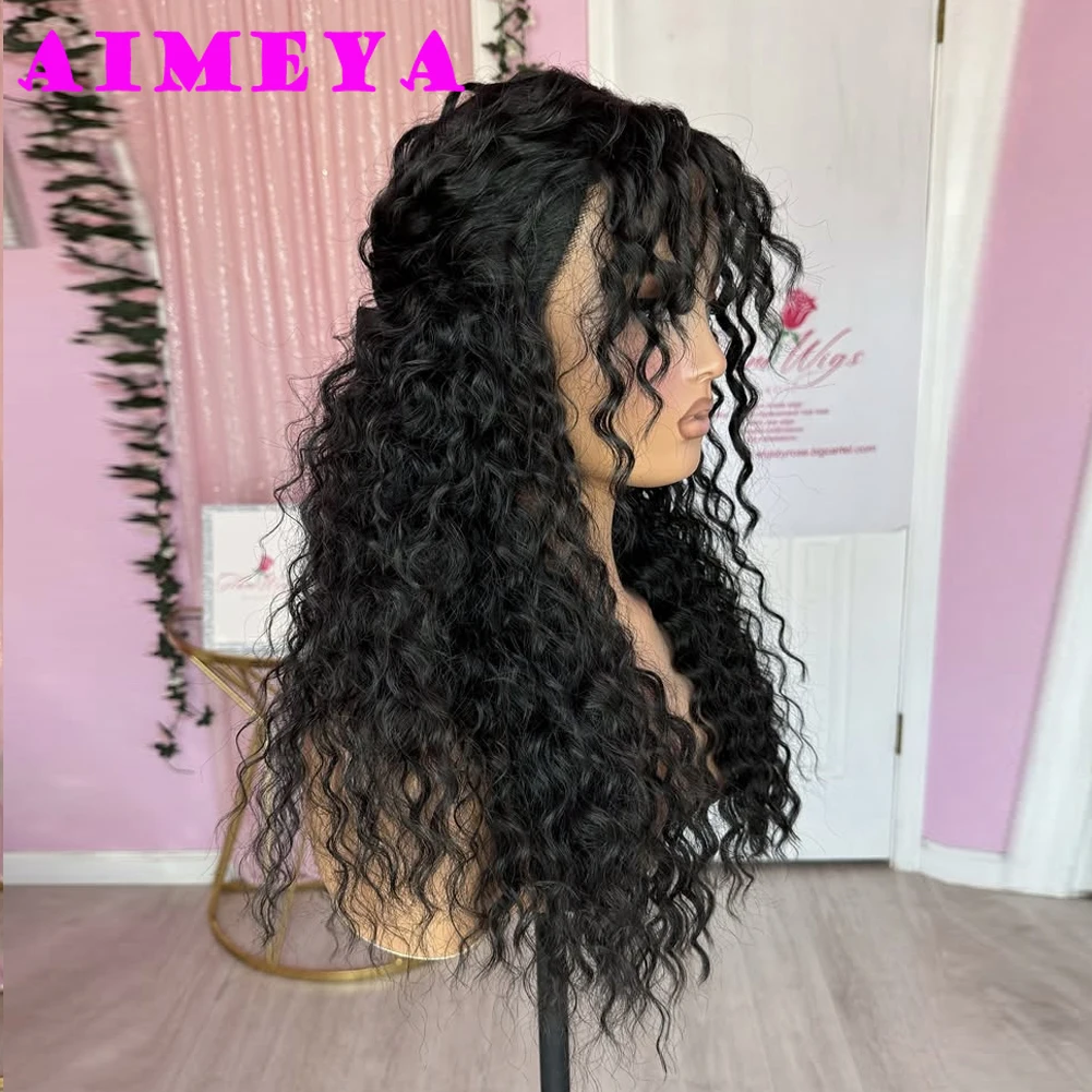AIMEYA Black Long Curly Synthetic Lace Front Wig for Women 13x4 Glueless Natural Hairline Synthetic Hair Wig Daily Use Cosplay