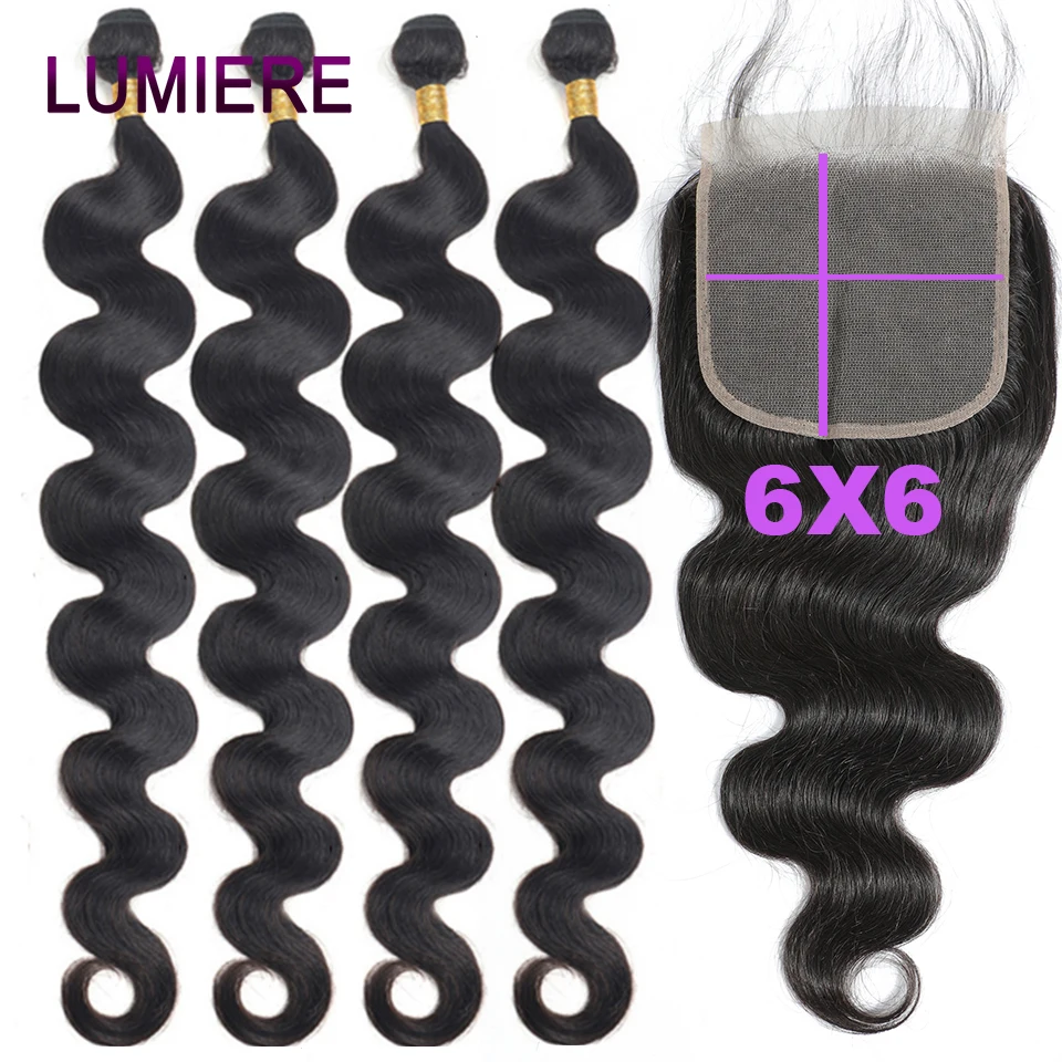 Body Wave Human Hair Bundles with Closure Frontal 5x5 6x6 HD Transparent 100% Virgin Human Hair Weave 3/4 Bundles with Closure