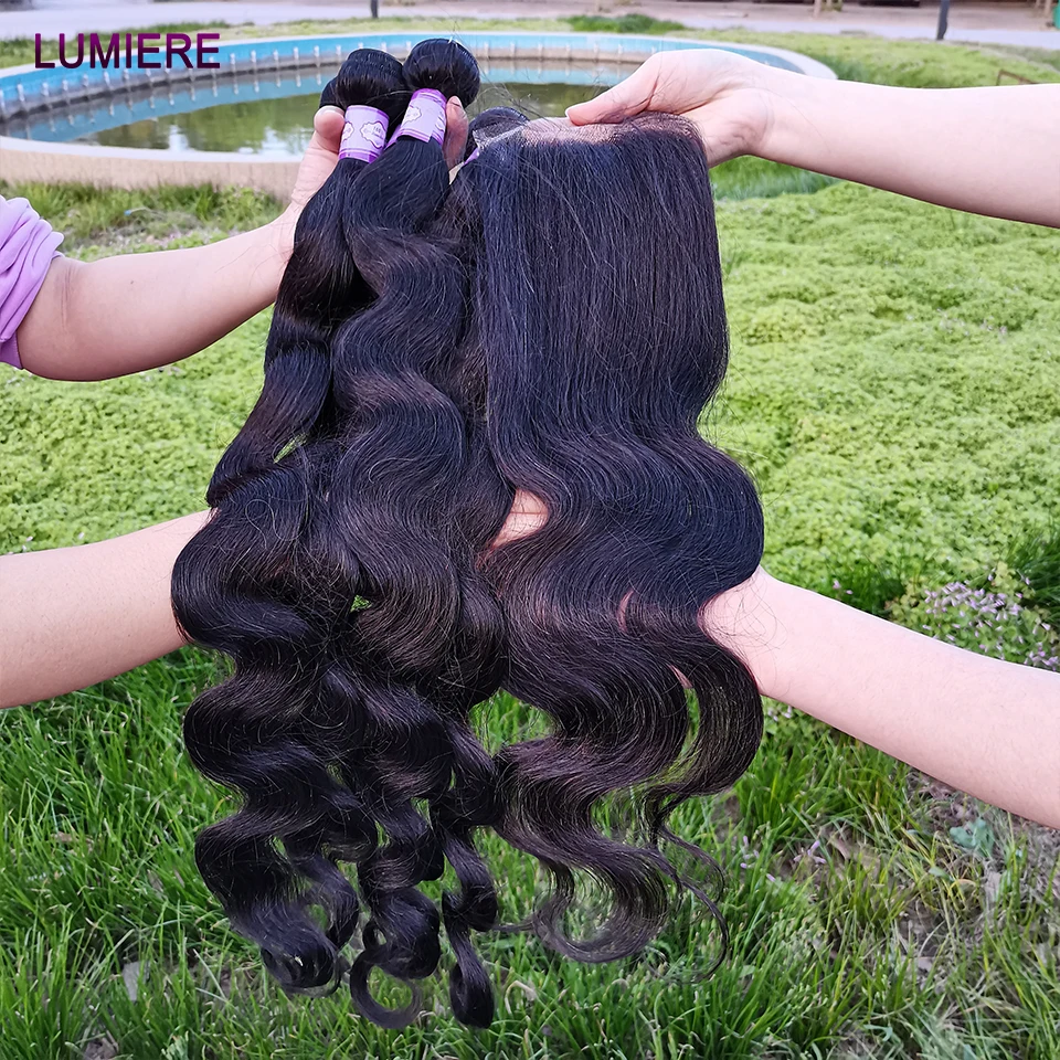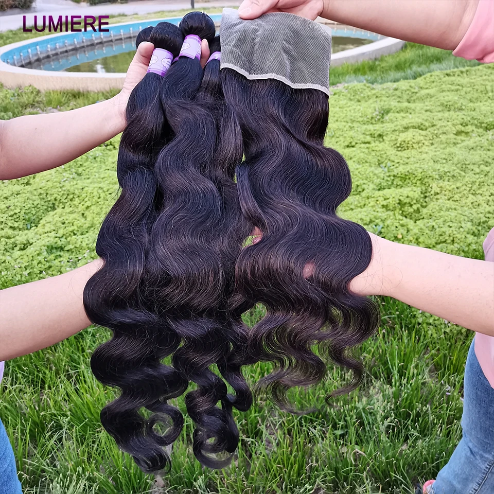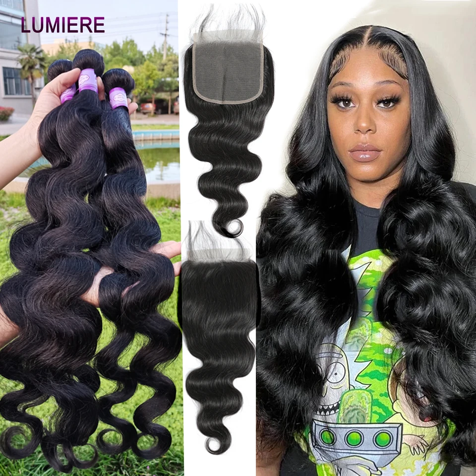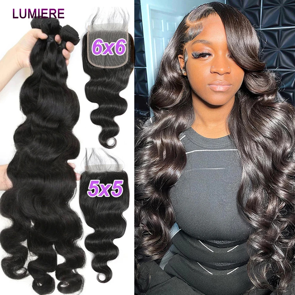 38 40Inch Body Wave Bundle With Closure 5X5 Brazilian Hair Weave 3/4 Bundle With Closure Frontal 6x6 HD Lace Closure With Bundle